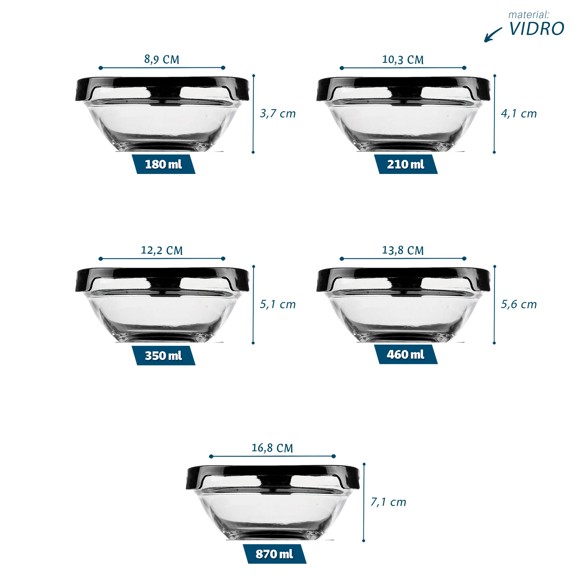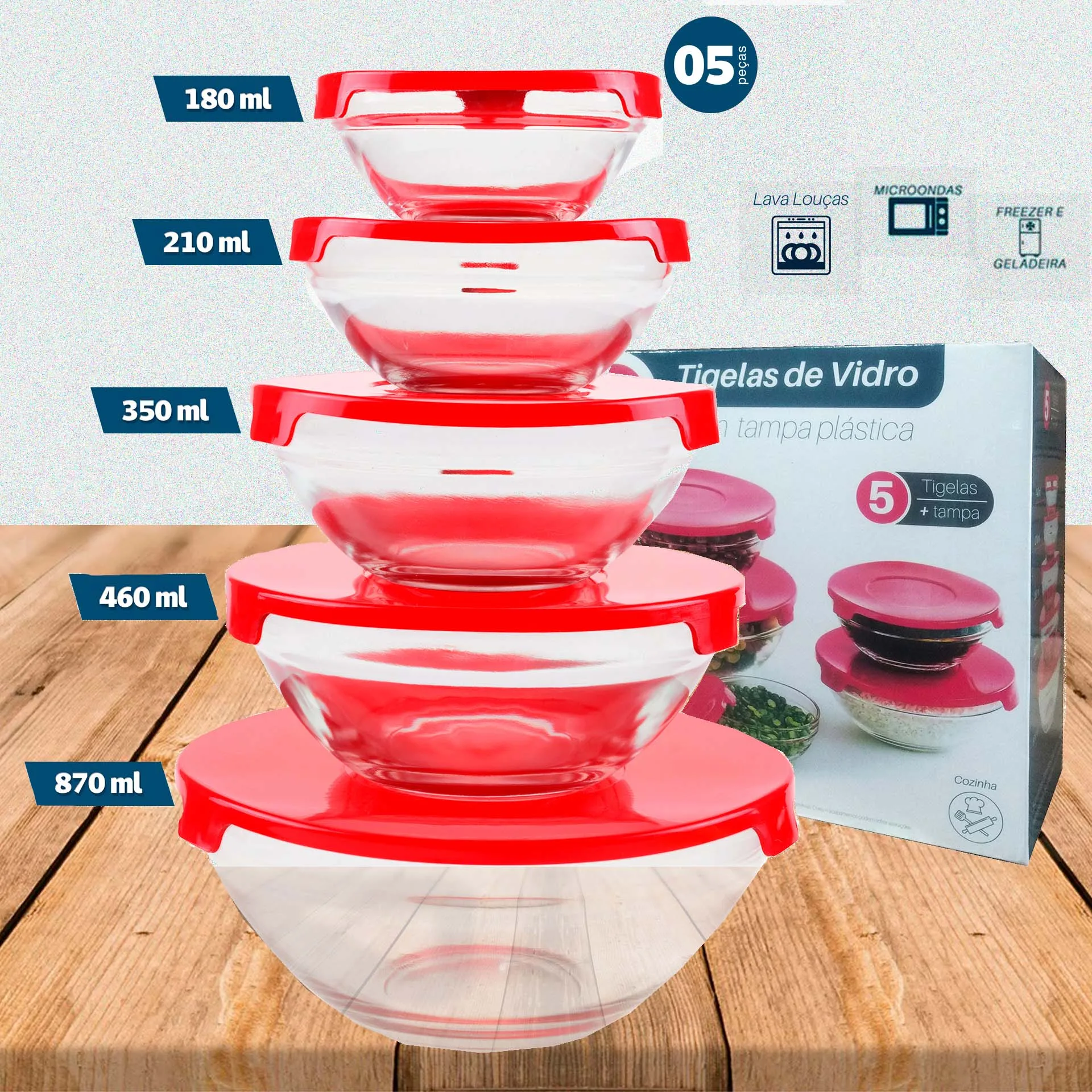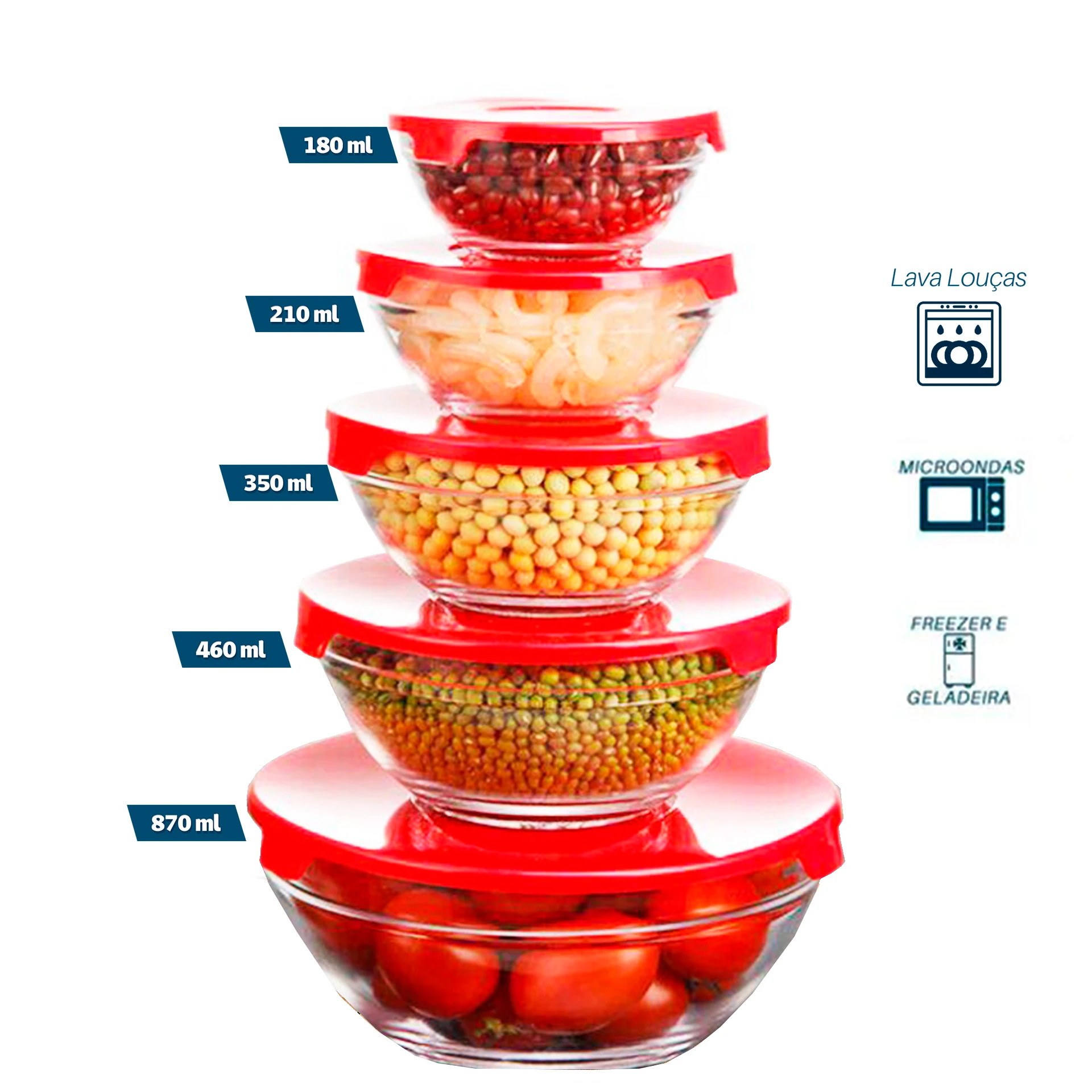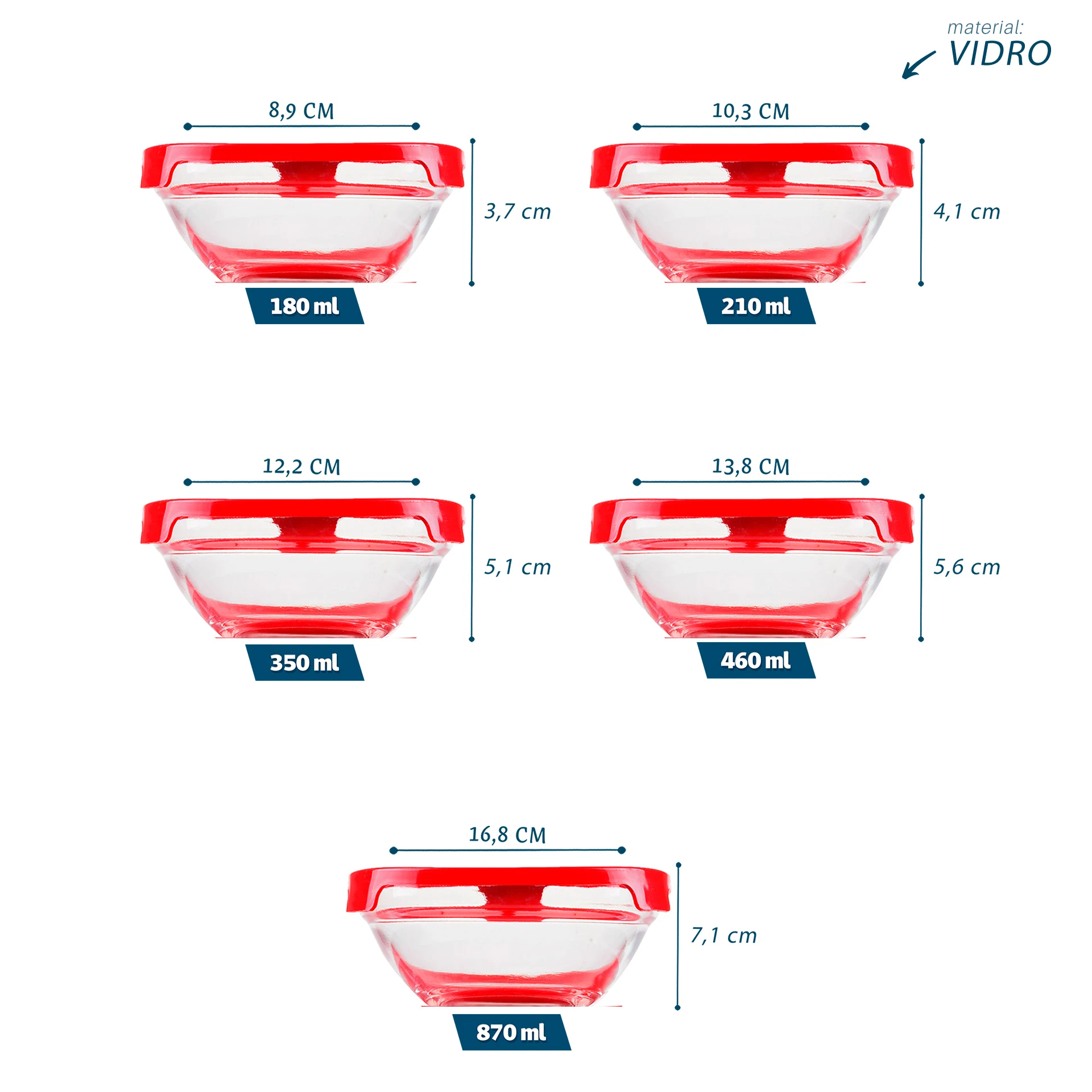 Esse Conjunto de Potes é perfeito para organizar e otimizar espaço na geladeira. Fabricado em vidro e plástico um material resistente e fácil de limpar. São 5 lindas peças para armazenar os alimentos com higiene e praticidade
